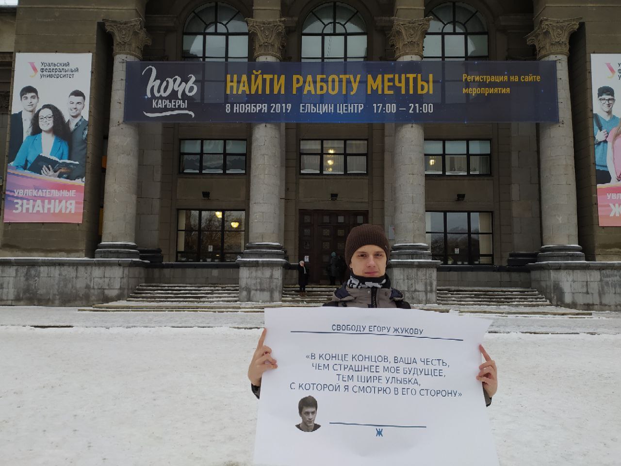 Егор Жуков получил три года условно, гнусный вердикт, несмотря на то, что он остается на свободе. В условиях путинского режима мы вынуждены радоваться тому, что за слова человек получил условный срок, а не попал в колонию на четыре года.