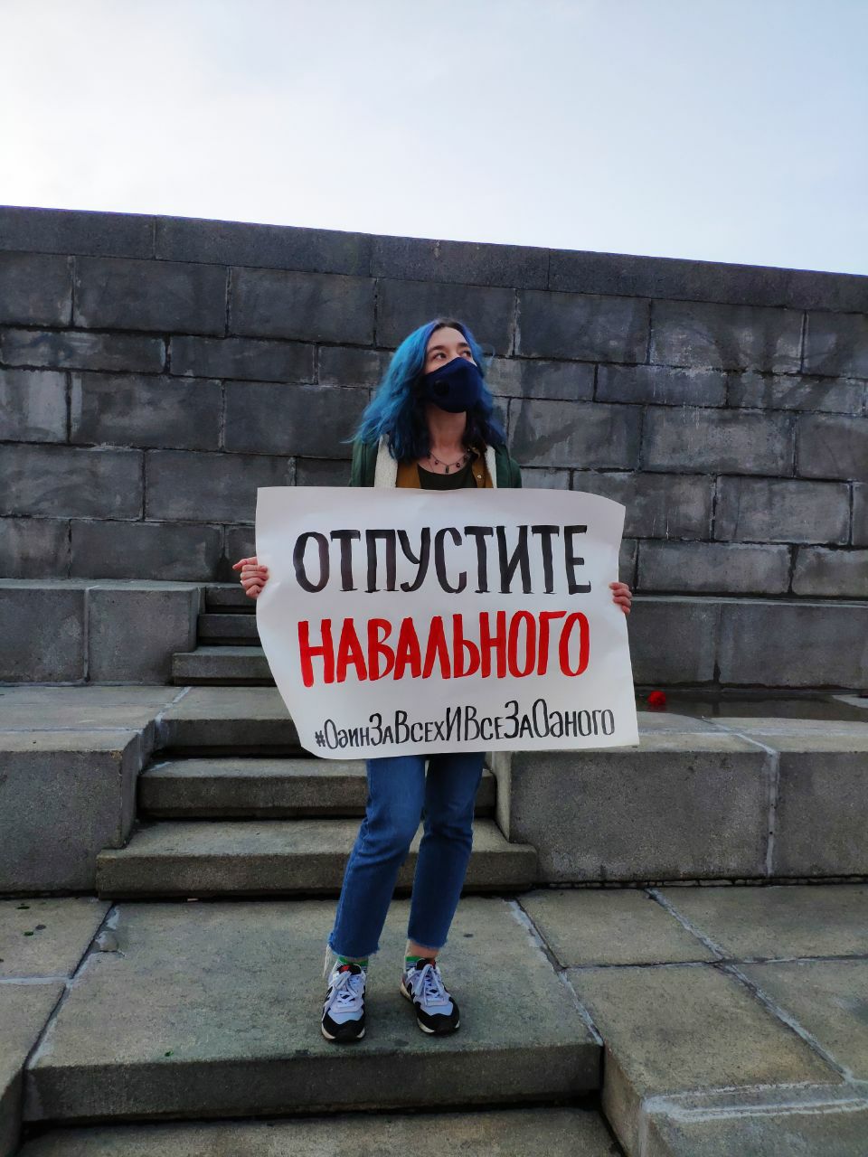 Именно с этим призывом — «отпустите Навального» — вышла на пикет Дарья. Егор встал на площади с плакатом «Путин боится Навального»: только этим и можно объяснить происходящее. Вероятно, спецслужбам важнее, чтобы никто не разгадал использованные яды, чем то, выживет человек или нет.