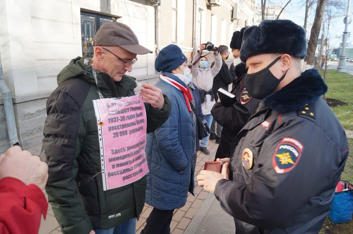 Члены нашего отделения принимали участие в акции общества Мемориал у здания на улице Ленина 17, где расстреливали приговорённых к смерти. Были небольшие проблемы с полицией, но всё обошлось.